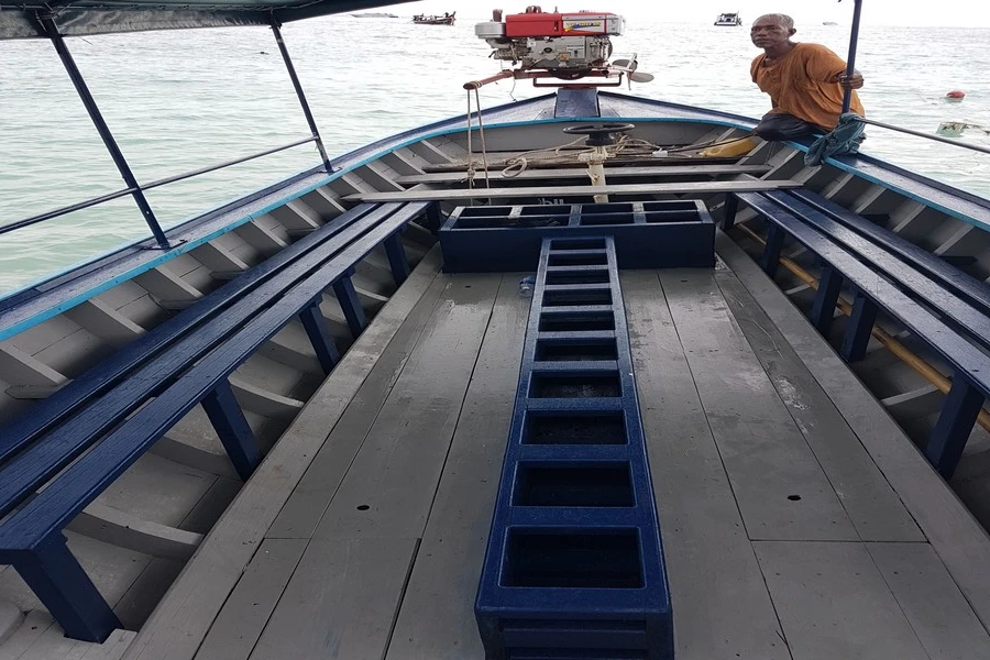 At a length of approximately 12 meters, the boat is small and agile, making it easy to navigate through narrow channels