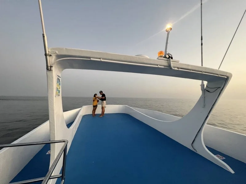 The boat features three spacious decks, including a huge sundeck where guests can soak up the sun and enjoy panoramic views of the surrounding sea.
